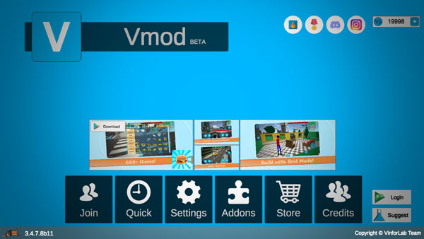 2、点击v模式沙盒上的“Addons”可以添加模组,自由开发,点击“Install”上传共享,“Details”删除模组。
