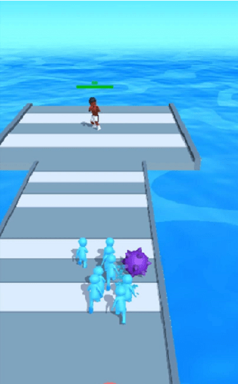 1、简单的操作技巧,直接点击开始游戏,左右滑动屏幕控制队形的移动,捡人并躲避障碍,直到终点。