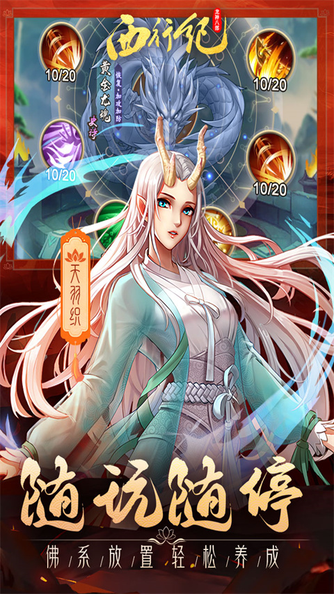主线剧情与成长任务将为你的西行冒险提供大量资源与奖励,放置模式让你不上线也能获得丰富经验与道具,解放双手,轻松游玩!