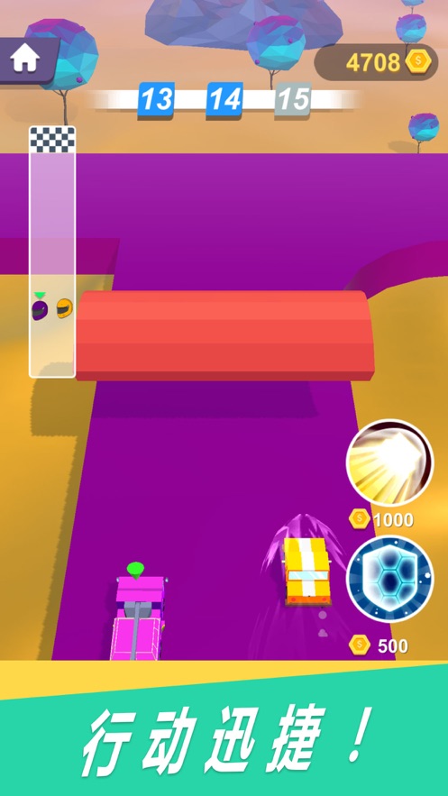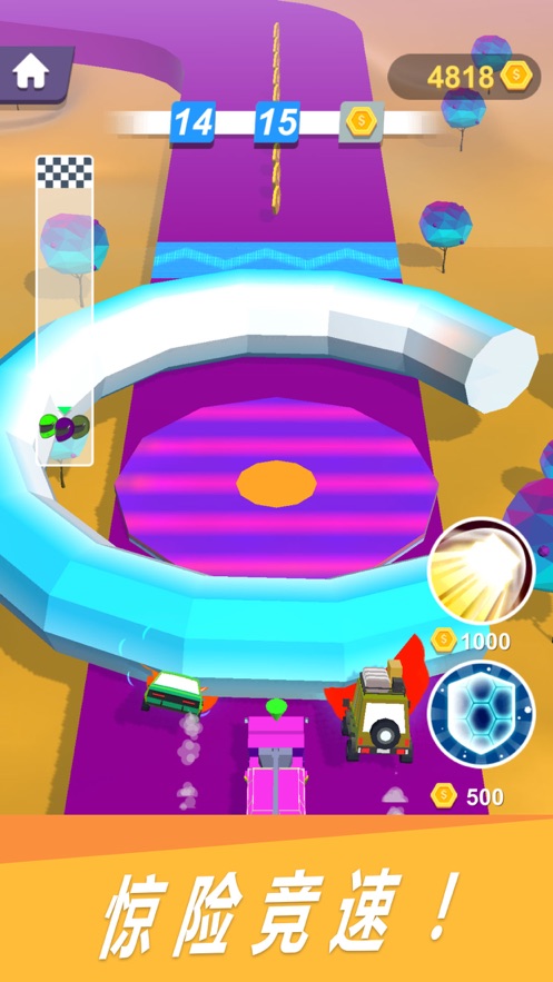3.按住屏幕汽车就能发动了,接下来让我们狂飙起来,以惊艳的表现完成比赛吧!