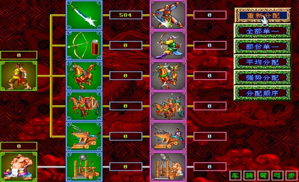 进入战斗画面时,自动切换到格状的移动模式,玩家可视战略上的需要,自行调整各个将军带兵的兵种,在部队与部队战斗时,更会切换到华丽的战斗画面。