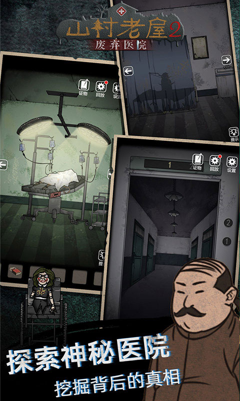 山村老屋2之废弃医院最新版是一款充满恐怖气氛,新颖的冒险解谜类游戏,同时也是山村老屋第二部,游戏延续了上一部的剧情。这次故事发生的地方是一个深山的老屋,著名侦探接到委托进入调查,寻找一本研究笔记,结果房子周围弥漫着让人致幻的毒雾,侦探通过机智解开老屋里面的谜题和机关拿到了笔记本,但被人击晕。游戏在美术设计上,延续了前作的经典画风,精致而又不失恐怖的游戏场景,全新的剧情走向,这次老屋又会发生什么,恰到好处的背景音乐,你能从中发现事情的真相吗?