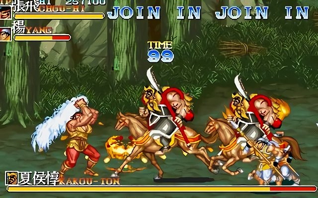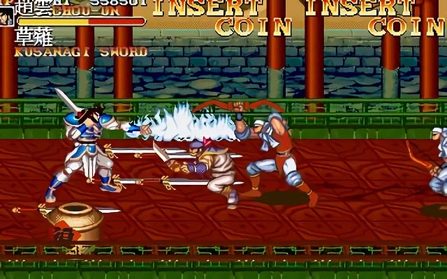 赵云:步行时执剑,动作最敏捷,为唯一没有地面摔技的角色,但能空摔,绝技为升龙斩。骑马时执长枪。