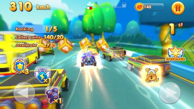 2.赛道的道具多种多样,除了加快速度之外,穿上防护罩你还可以肆无忌惮的去撞击,不会影响你的比赛。