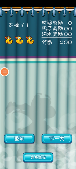 2、水流覆盖小黄鸭会获取在左上角,小黄鸭就相当于关卡的星级。