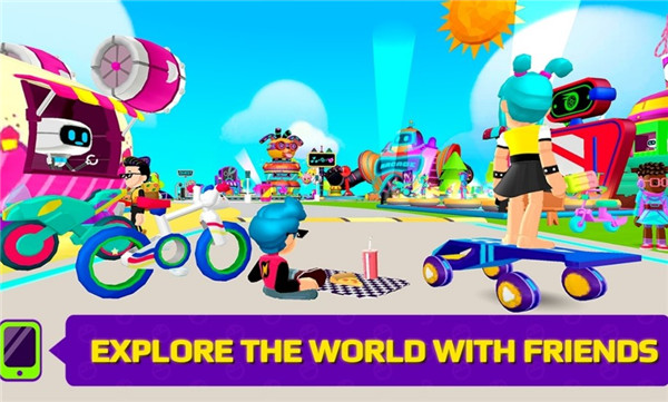 这个世界是你的! 除了探索和面对挑战之外,你还可以尝试不同的活动:在花车上放松,吃冰淇淋,用power up跳得很高,跳舞,和你的社区一起玩耍!