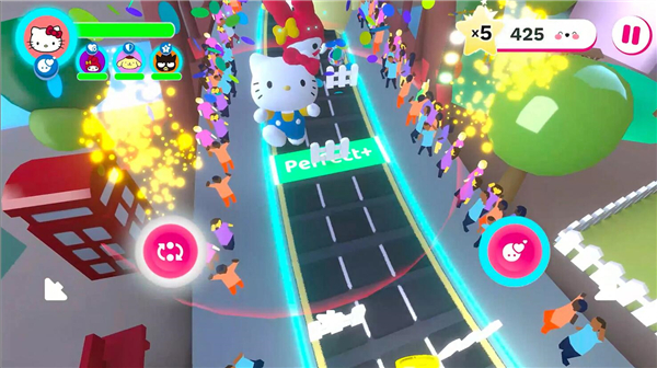 Hello Kitty是Netflix, Inc.打造的一款国内外非常受欢迎的游戏系列,包含了hellokitty美甲沙龙、Hello Kitty World2、凯蒂猫(hellokitty)时尚之星等系列手游,在这里小编同样为大家带来这款hello kitty幸福游行中文最新版,这是当前Hello Kitty推出的最新一款音游,与Hello Kitty和朋友们一起打造盛大的游行,结交新盟友,凭实力避免可能给游行带来麻烦的陷阱!游戏中玩家们将扮演我们首先的Hello Kitty,跟两个朋友一起踏上奇幻的音乐派对之旅,通过音乐的旋律跳舞为市民带来欢乐,在这个过程中会有新朋友加入你们,随着庆祝活动的进行,越多人加入越开心。