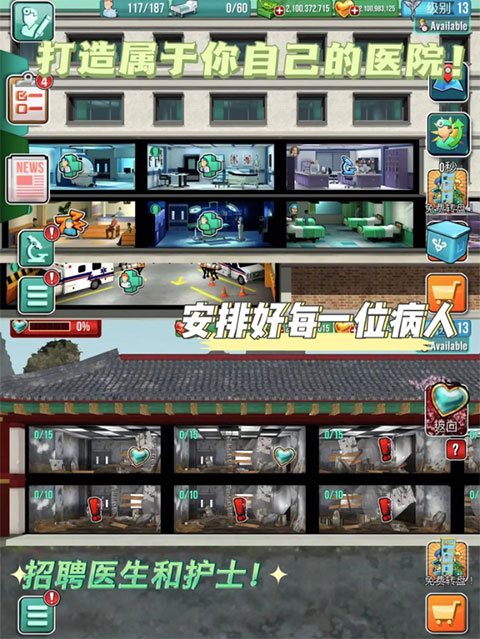 通过急诊室,重症监护室和更多部门建立和管理您自己的医院。您还可以扩展和升级您的医院,以适应新雇用的外科医生的新部门!真正的医院主管需要管理这样一个令人印象深刻的医疗机构!
