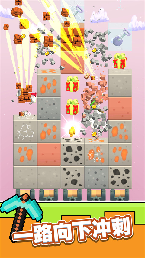 3、对你的铁铲不断的进行合并升级,能够敲碎更多的障碍物。