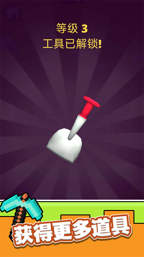 5、当道具挖到低即可通关,通关后即可获得奖励和解锁新的矿物;