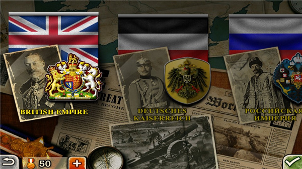 8个帝国的剧本战争,共40个战役。[大英帝国,德意志帝国,俄罗斯帝国,美利坚合众国,大日本帝国,大清帝国,法兰西帝国,奥匈帝国]