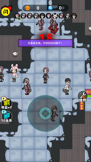 游戏分为前期和后期,分界点在于刚开始,鬼1级时撸门的宿舍是否有炮塔,使其血量减少,进而逃跑浪费时间影响鬼撸门升级。