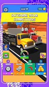 闲置卡车赛车游戏中,玩家们可以在其中选择不同的汽车参加比赛,赢得不同的奖励,来升级你的车辆。