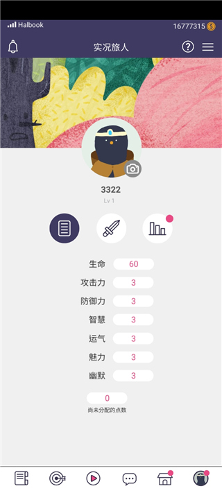 7、点击最后一个图标可以查看当前自己的属性;