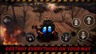 2、虚拟控制的全部按键可以轻松让你控制好车辆,更多的僵尸赛车等你去解锁;