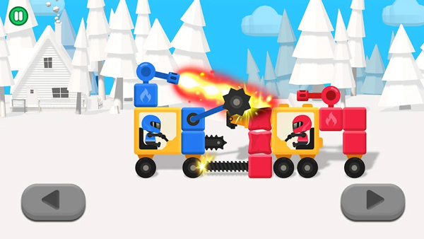 1、游戏中通过组装解锁不同的车辆来和敌人战斗,获胜即可获得金币购买更多零件。