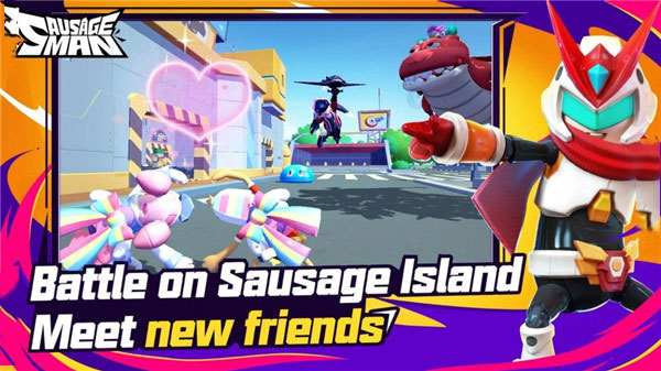 在香肠派对日服游戏中玩家们还能体会到到酣畅、硬核的战斗系统以及含信号枪、复活机、战术掩体、身份卡系统,考验着队伍间的默契程度,同时也提供了锦鲤鱼、赛博朋克风格、女仆等搞怪套装以及打啵、美少女变身等贱萌动作和各种举白裤裤投降、委屈哭哭等气泡表情供玩家们和其他肠肠互动。