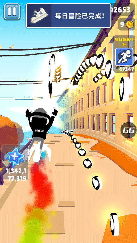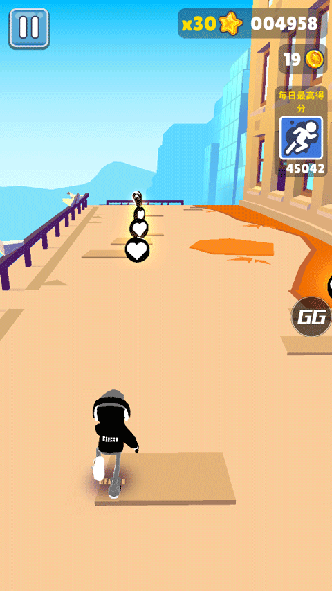 5、除了可以拾取的道具外,玩家还可以双击屏幕使用主动道具滑板,它可以抵挡一次撞击。