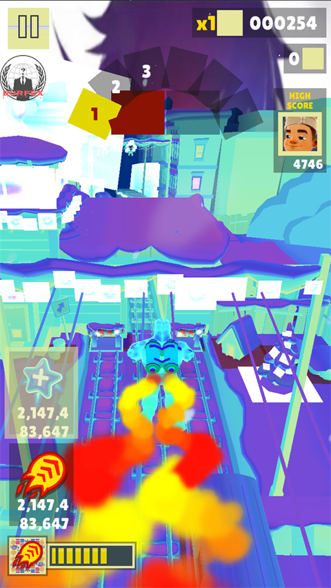3、超刺激的游戏体验,躲避障碍物和追赶者,跳过高墙和地铁轨道等。
