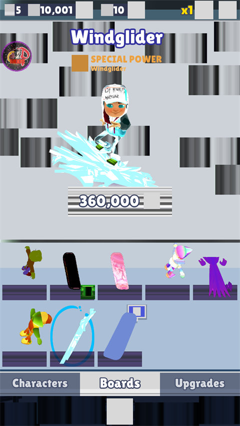 4、双击使用滑板也可以增加双倍得分,并且滑板还有特色效果,可以帮助你更好跑酷。