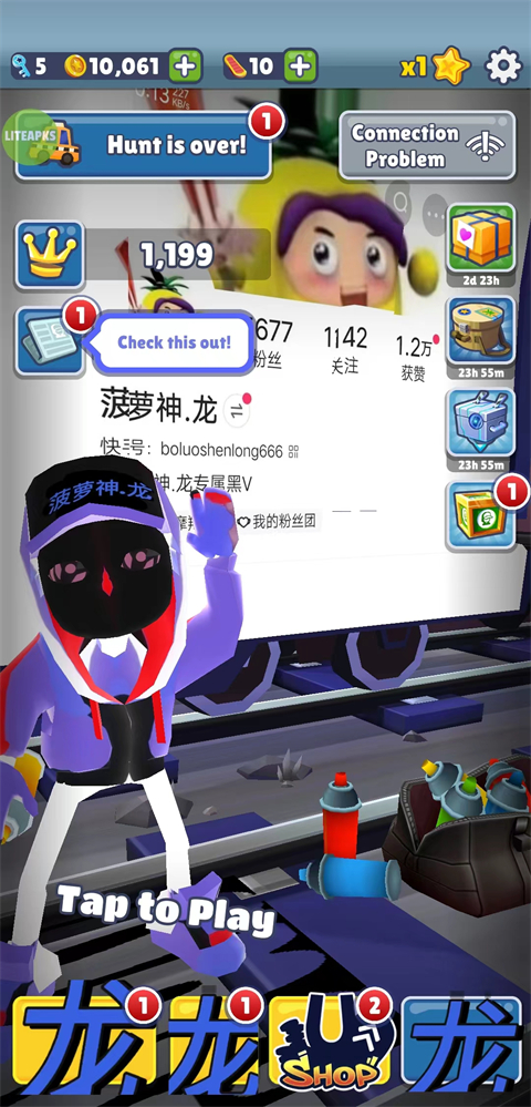 除此之外,地铁跑酷菠萝神龙定制版有着专属阴影与拖尾,LONG字样的阴影加上炫酷华丽的飞行器喷射拖尾,凸显此版本特色。最重要的是,此版本内置修改器,搭载的是LITEAPKS菜单,它能为大家提供无限购买、无限道具、视角调整等多样内容,具体功能大家可以进入游戏亲自体验,赶紧下载试试吧!