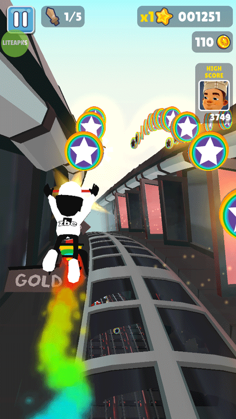 3、如果撑杆跳起来时捡到了喷气背包,可以接力飞行,喷气背包可以让你无敌很长一段时间并且还有大量金币。