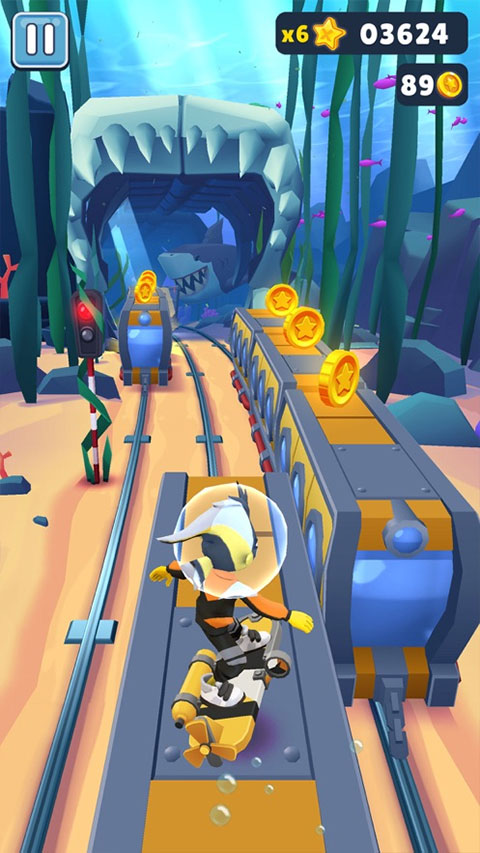- 这个地球日,Subway Surfers回到水下!在海底奔跑,在海底与水母、珊瑚和其他海洋风格的美丽元素赛跑。