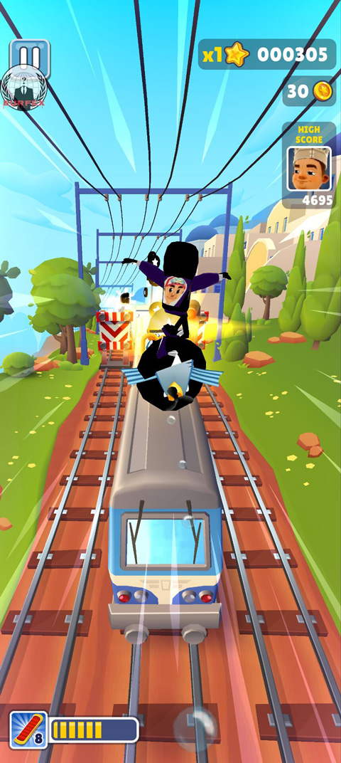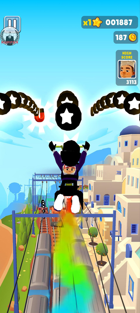 4、跑酷途中会遇到各种各样的可拾取道具,包括磁铁,弹跳器,喷气背包等,每一种都有不同功能。