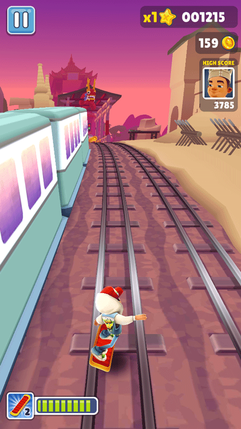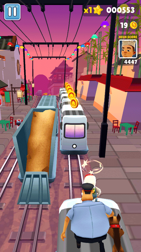 不同于其他跑酷类游戏,地铁跑酷有一个有趣的设定:乘地铁逃跑。当玩家逃跑到地铁站时,可以通过连续冲刺和反转让角色上地铁,此时将获得多倍积分。但是在地铁车站内,玩家需要更加警惕,因为车站内道路连接多,有许多陷阱和障碍物。在车站内能否稳稳进入地铁,就成为了分高低的关键。
