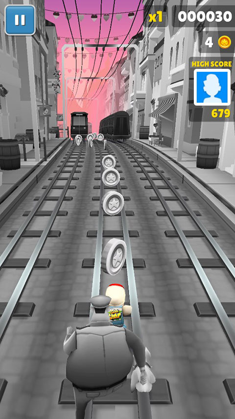 地铁跑酷黑白情人节版是以风靡全球的地铁跑酷为基础,由星辰大蛇制作而来的一个版本,与原版不同的是,游戏去除了地图原有的色彩,变成了灰色,并且让帅气的保安,穿上了灰色的衣服,增加了游戏趣味性的同时,变得更加有趣。游戏玩法简单,十分容易上手,玩家只需操控杰克,上下、左右滑动,躲避障碍物,收集金币,看看谁是金币收集小能手。另外,在地铁跑酷黑白情人节版中,玩家还可以拾取滑板、磁铁、弹簧鞋、飞行背包等道具,大大提高了游戏的可玩性,所以大家还在等什么,感兴趣的小伙伴赶快来下载体验吧。