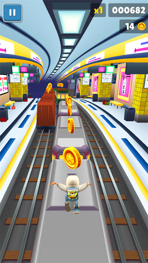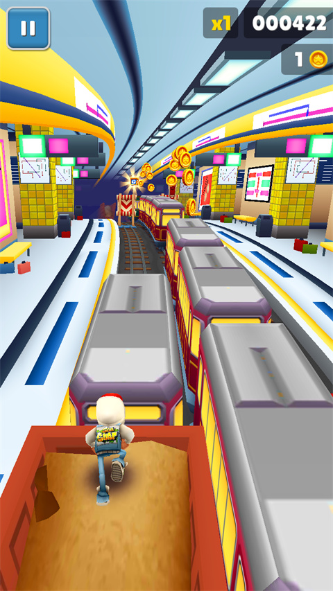 3、被保安抓住不会损失东西地铁跑酷操作方法,但是单局游戏就结束了。你把保安逗在后面时,你去撞迎面而来的火车。保安和狗也会被撞,你有时看保安发现他的那条狗好像是被他拎起来似的;