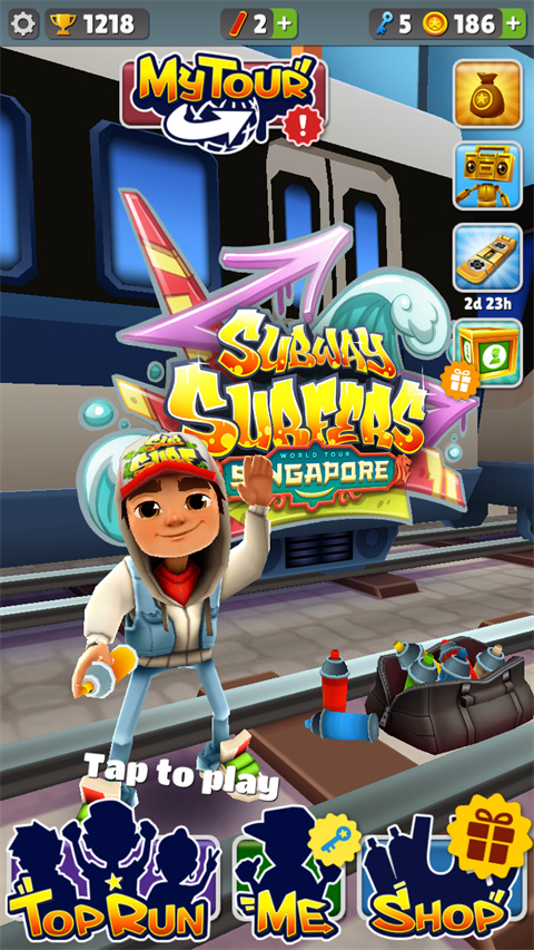 地铁跑酷新加坡版本是地铁跑酷世界巡回赛系列的第104期,喜爱前往世界各地进行跑酷活动的杰克,这次来到了亚洲!他将前往美丽的国家新加坡,与他志趣相投的众多小伙伴们会合,穿梭著名的滨海湾公园,并且与别具特色的鱼尾狮留影,在时髦的都市街道上一块热情狂奔啦!但要小心的是,这次同样会有看杰克一伙不顺眼,穿着短袖,凶巴巴的警察和他只会汪汪叫的小狗狗登场,准备在玩家操作失误时,将调皮捣蛋乱涂鸦的杰克,带回警局好好反省一番嘀!玩家快发挥你灵活的手指,通过左右移动,上跳下滑的方式,让杰克或是他的好友们,完美展现矫健身手,闪避重重障碍吧!值得一提的是,地铁跑酷国际服新加坡版本带回了贾樟柯,也带回了狮子板,引入了名为Maeko的新角色和名为Retro Wave的新板。更多新奇内容欢迎大家前来本站免费下载游玩探索!