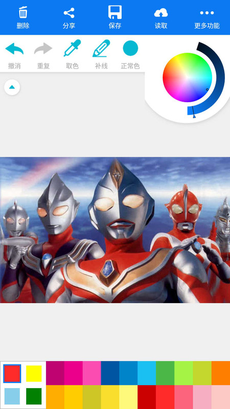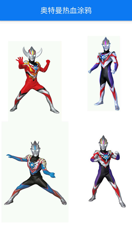 奥特曼热血涂鸦游戏是以热门动漫奥特曼为题材的休闲涂鸦类游戏,在这里你可以为你喜爱的奥特曼战士塑造属于自己的色彩,也可以开发你的创意思想来设计出全新的变身色彩,打造你的专属奥特战士形象,有趣的游戏模式,带你感受不一样的奥特曼游戏乐趣.