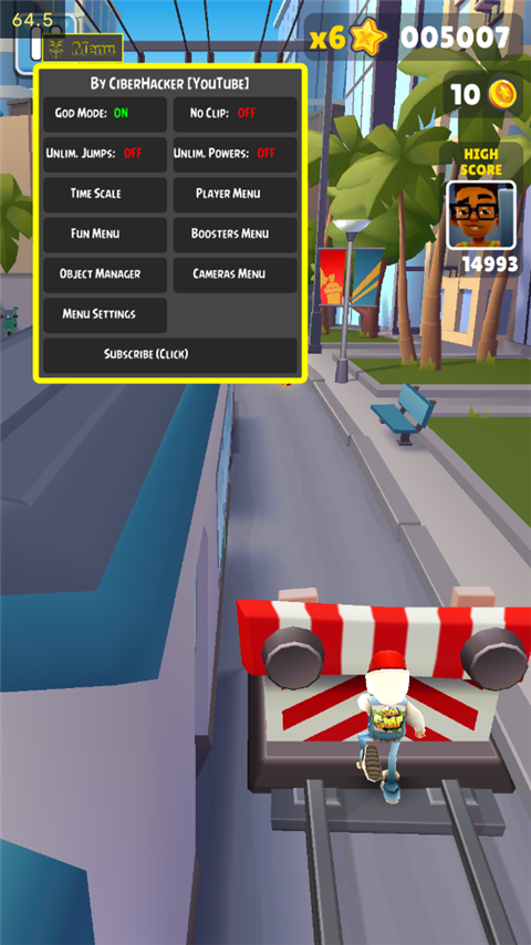 地铁跑酷穿透版玩法和地铁跑酷一样,游戏的操作非常简单,玩家可以通过滑动手指在屏幕上来控制角色的移动。他们需要左右滑动来避开障碍物,上下滑动来躲避障碍物和跳跃。同时,玩家还可以通过滑动手指在屏幕上向左或向右滑动来切换轨道。游戏的目标是尽可能地奔跑和收集金币,同时避免撞到障碍物和被警察追捕。在游戏中,玩家可以通过收集金币来购买新的角色和装备,这些角色和装备具有不同的特殊能力,可以帮助玩家更好地闪避障碍物和获得更高的分数。此外,游戏还提供了各种道具和装备,如喷漆罐、跳板和磁铁等,它们可以提供额外的加速和辅助功能。今天小编带来的这款是包含内置菜单的,通过内置菜单可以实现无敌、穿透、无限跳、游戏加速等。有了这些功能,玩这款地铁跑酷肯定让你能够有不一样的游戏体验。感兴趣的话赶紧下载体验吧!