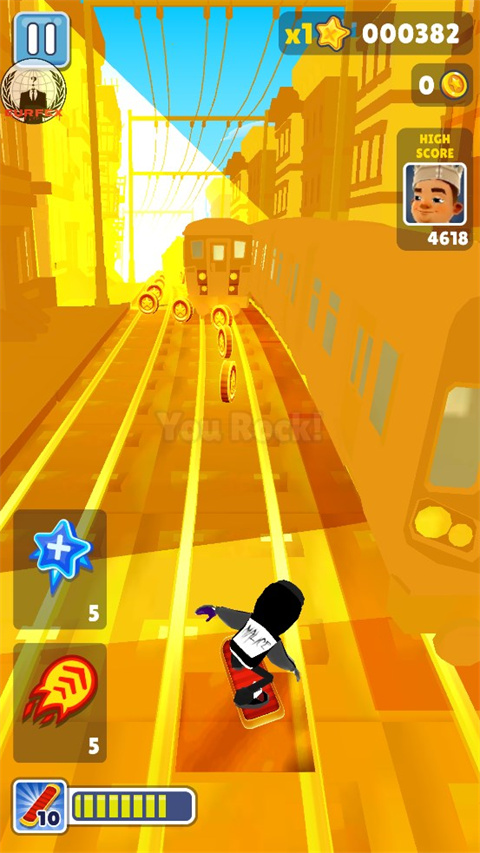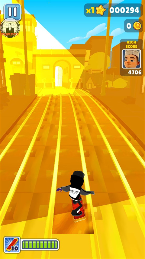 (1)滑板——购买滑板后,在游戏过程中双击屏幕,即可激活滑板,人物承在滑板上进行滑行,并且在有效时间内拥有两条生命。