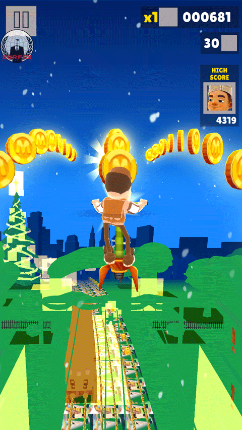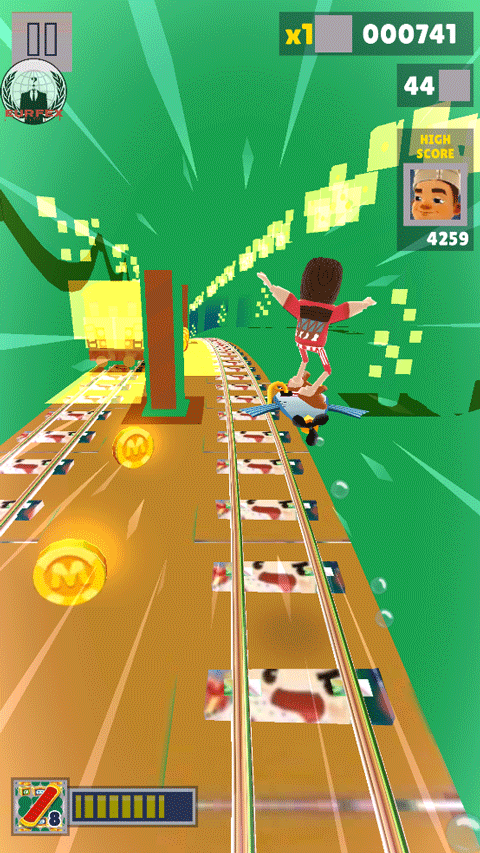 5、滑板是最好的保命道具,使用期间可以抵挡一次撞击,并且还会获得双倍得分。