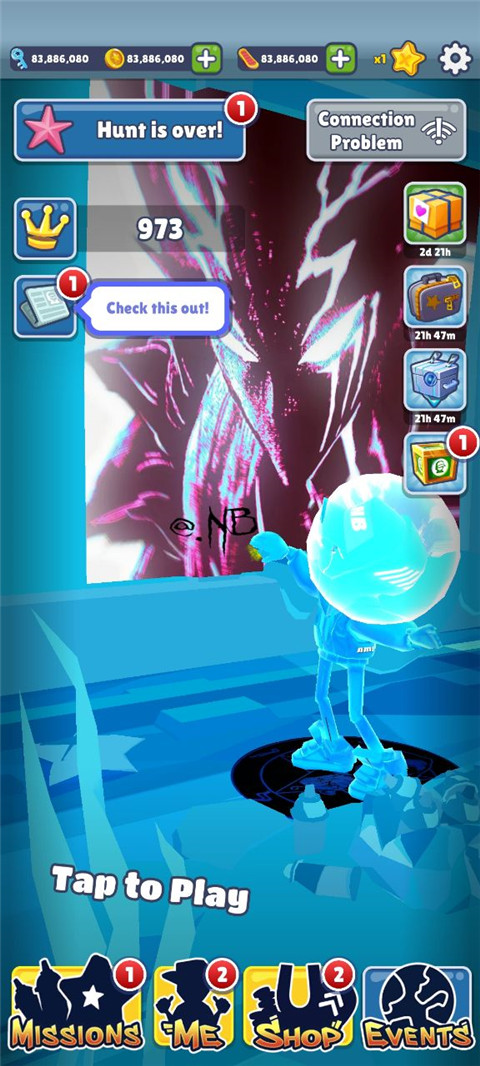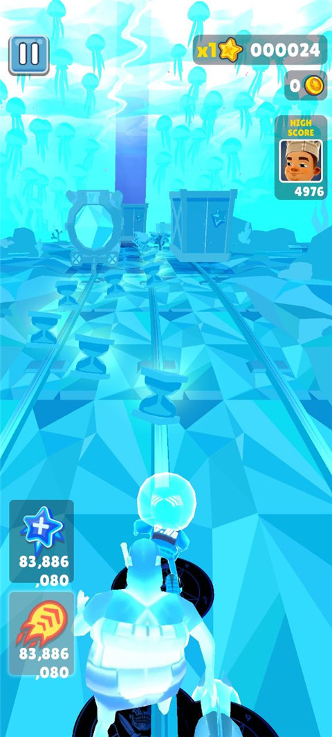 4、随机应变沉着应对,学会默数滑板的消失时间,以及优化跑酷路线(何时放开的捡道具、游戏币,何时选择安全路线为主)不要顾此失彼。