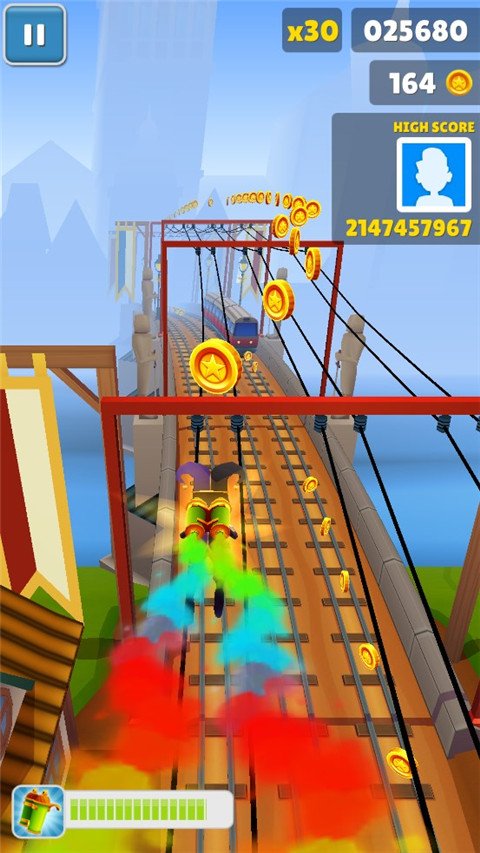 4、道具合理利用。玩家们在游戏中不仅要收集金币,扑面而来的火车也会让你累够呛,在这个过程中你可以使用道具,加速道具能够让你快速前进,使用滑板可以帮助你多出一条生命,点击屏幕两次可以使用道具。