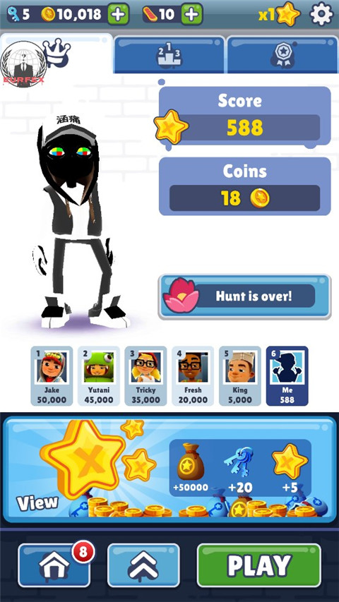 1、涵痛定制版本是涵痛私人定制版本,带你感受不一样的地铁跑酷。