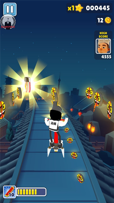 3、宝物延续和扩展游戏成绩分值:大家也可以理解为是一种能力效果比较强的道具,例如喷射器和滑板一个无敌一个名刀,可以在最为危机的时刻帮助你完成一次避险;