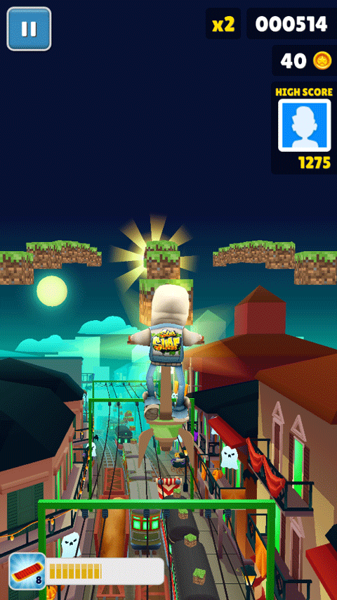 地铁跑酷草方块金币魔改版本是由经典动作跑酷游戏《地铁跑酷》魔改而来的版本,游戏中的可拾取金币修改成了《我的世界》中的草方块,道具也变成的像素风格,两款游戏的梦幻联动,给地铁跑酷玩家带来新奇的游戏体验。玩家可以自由选择多种模式,每个模式都不同,可以享受完美的游戏。因为游戏是由万圣节版本改版而来,地图还是以万圣节元素为主。万圣节的特别主题,全新的限定人物和滑板给玩家们带来更多玩法和快乐。游戏的玩法以躲避障碍为主,玩家需要通过滑动屏幕操作主角,跳跃、翻滚、切换道路,避开各种危险。游戏中还有多种道具帮助你提高跑酷技巧和增加得分,合理利用它们会有意想不到的结果。你绝对没试过在地铁跑酷中拾取草方块吧,感兴趣的话快在本站下载体验吧!