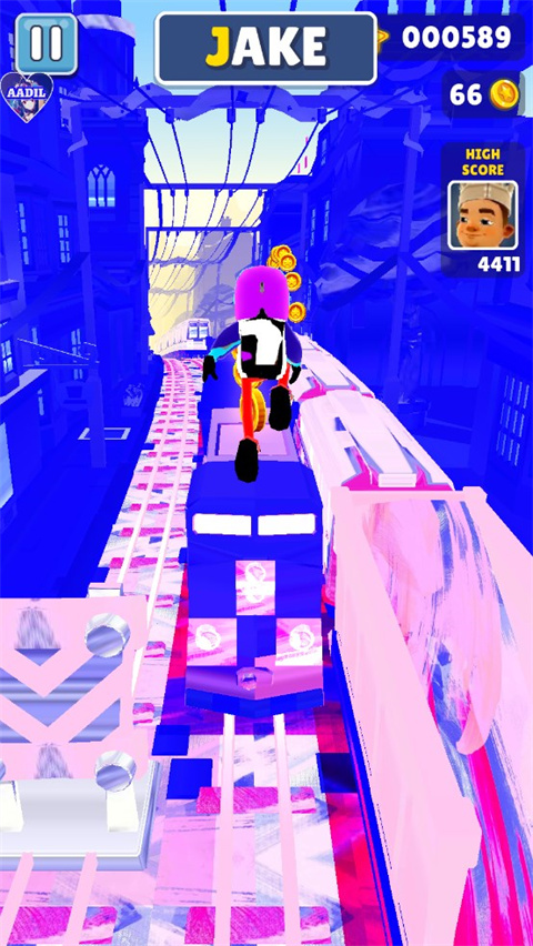 地铁跑酷CEnk7公益3.0定制版是由地铁跑酷玩家制作的一款全新的《地铁跑酷》魔改版本,该版本最大的优势在于修改了更为独特的背景,采用了粉蓝色调进行设计,不仅没有让玩家产生反感,反而能够给玩家一种视觉上的极致享受,带来沉浸式的跑酷体验。虽然游戏玩法与原版相同,但作为一款非常经典的跑酷游戏,其顺滑流畅的操作手感,精致的3D画面,让玩家更是乐在其中。并且游戏中障碍和火车的刻画与配色都非常到位,各种特殊技能和物品的显示效果也十分给力。