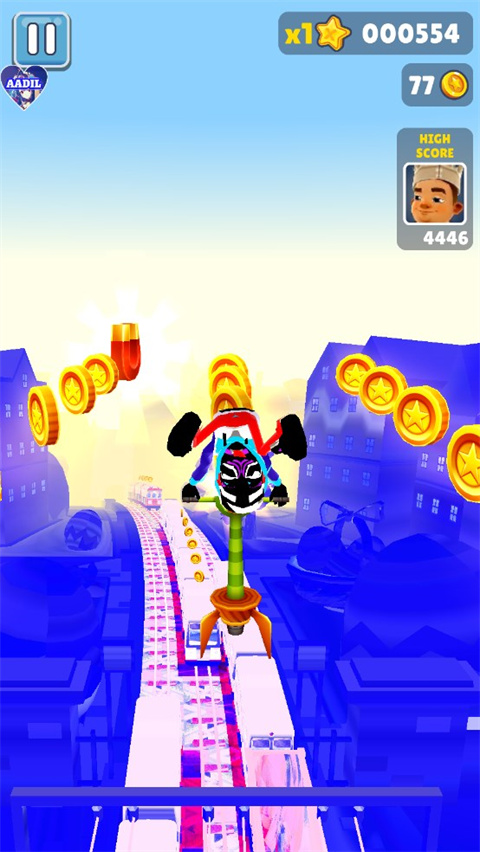 此外,地铁跑酷CEnk7公益版本中精彩的特效也是该游戏中不可忽视的一大亮点,无论是华丽到要溢出屏幕的道具特效还是炫酷的角色造型,这些无一例外都让人感受全新的乐趣体验。如果你是跑酷游戏的忠实爱好者,那么这款游戏绝对是你的最佳选择。