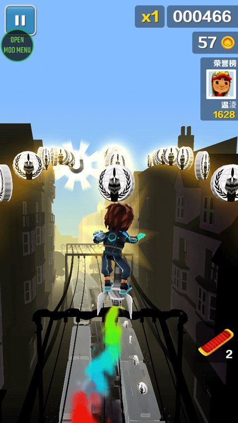 4、当然,有一款道具可以帮助你提高容错率,那就是滑板,双击屏幕就可以使用,它能帮你抵挡一次撞击。