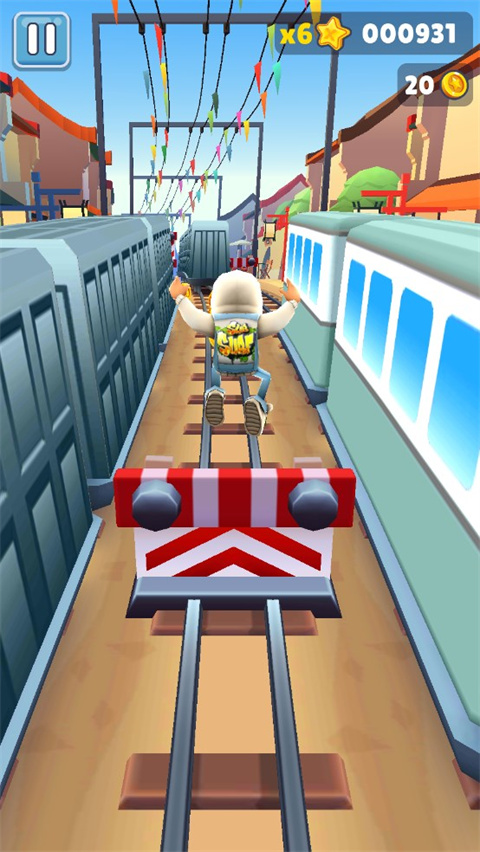 在游戏有活动的时候经常会出现收集品出现在高高的屋顶上,要保证屋顶附近有落脚点,也就是火车,这样玩家才可以借着火车向上跳到屋顶。有个小小的技巧需要告诉大家,在跳的时候人物不论在左右还是中央都是可以进去的哦,用跳鞋的话很顺畅,但不要玩死,无跳鞋也可以放心大胆地上去,只会小绊一下并不碍事。