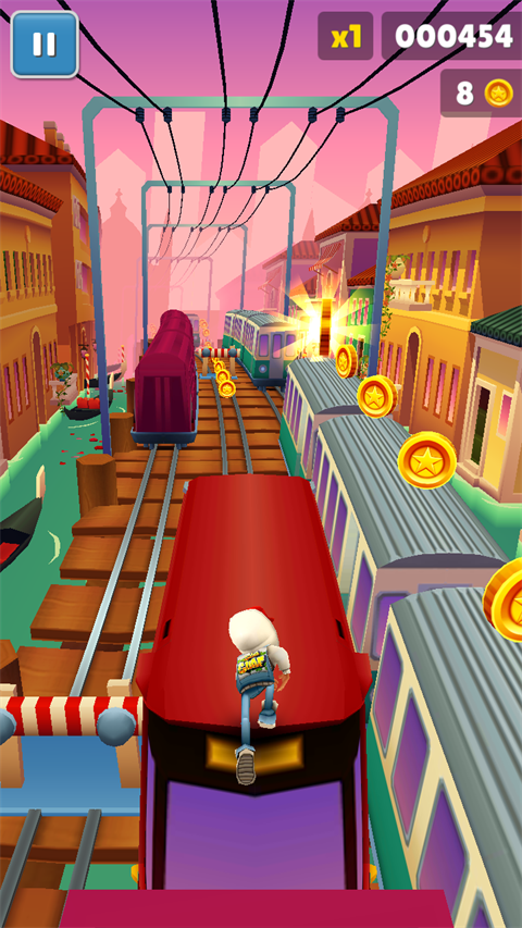 如果不小心撞到哪被警察追了,这时使用滑板可以立刻解除这个debuff,当然直接迎面撞上就不能算了;有些任务要求准确收集多少多少金币,这种任务使用二连跳滑板会很容易,因为二连跳可以和超级弹跳达到同样的高度却不会吸收脚下的金币;个人觉得要用滑板的时候连点两次屏幕比直接按滑板按钮要快,一般在有危险来临的时候用这样能起到护身符的作用。