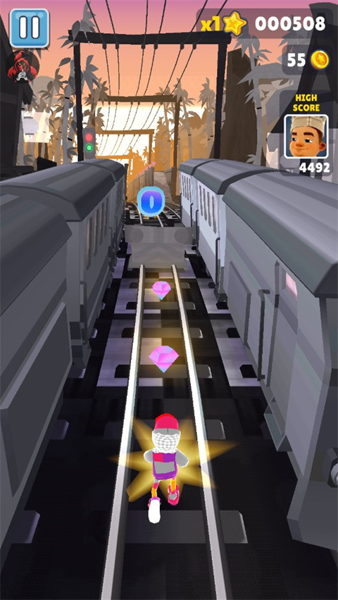 4、随机应变沉着应对,学会默数滑板的消失时间,以及优化跑酷路线(何时放开的捡道具、游戏币,何时选择安全路线为主)不要顾此失彼。