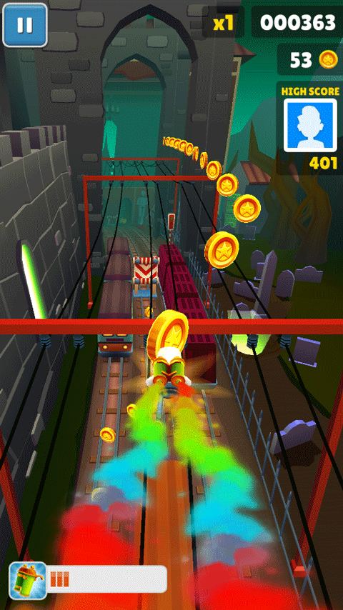 收集硬币是获取高分和购买角色、道具的重要途径,要尽可能多地收集硬币。