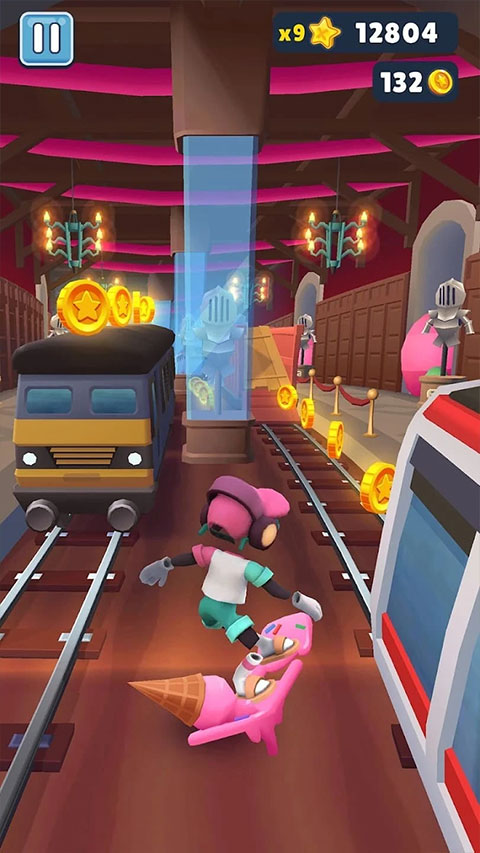 上一站我们在奇幻瑰丽的水下城市体验了水下探险的乐趣,这次,我们回到了地铁跑酷爱丁堡版本,寻找复活节的彩蛋,全新的UI设计,与之前不同的是,这次没有提到独角兽森林或中世纪的任何部分,唯一剩下的类似中世纪的东西就是城堡。你们是否还记得在巴塞罗那见过图蒂,这次我们迎来了他的妹妹弗鲁蒂,以及Callum的新粉红朋克服装和全新的滑板I-Scream Board,努力提升自己的等级来获得全新的人物和装备吧。