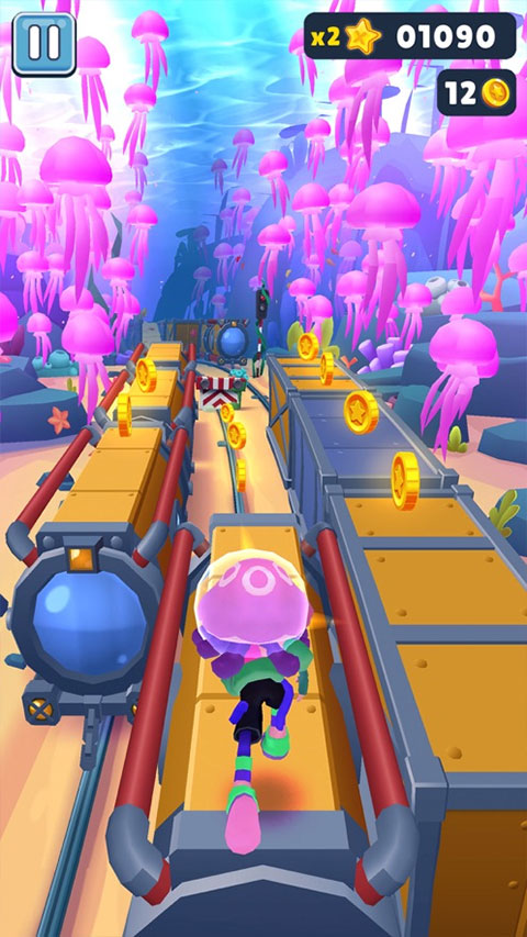 - 这个地球日,Subway Surfers回到水下!在海底奔跑,在海底与水母、珊瑚和其他海洋风格的美丽元素赛跑。